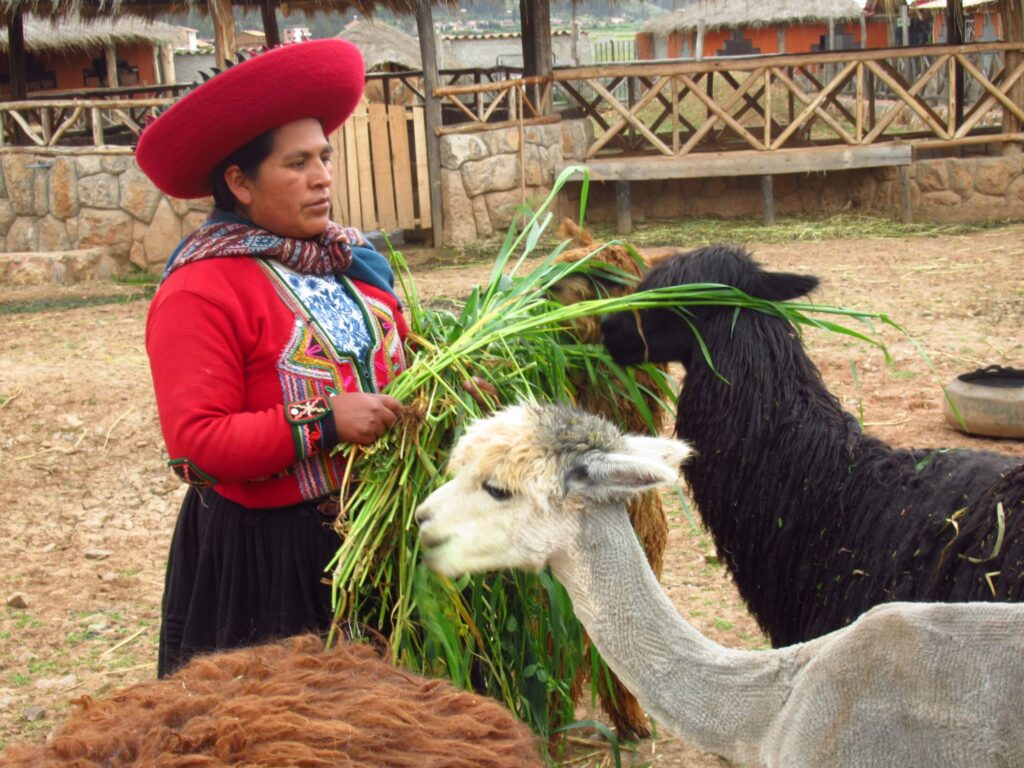 Cuzco the ancient capital of the Inca empire. On route to the Sacred Valley we first stopped to see llamas and alpacas and a demonstration of weaving and how they spin the alpaca wool and dye it the most wonderful colours with natural dyes.