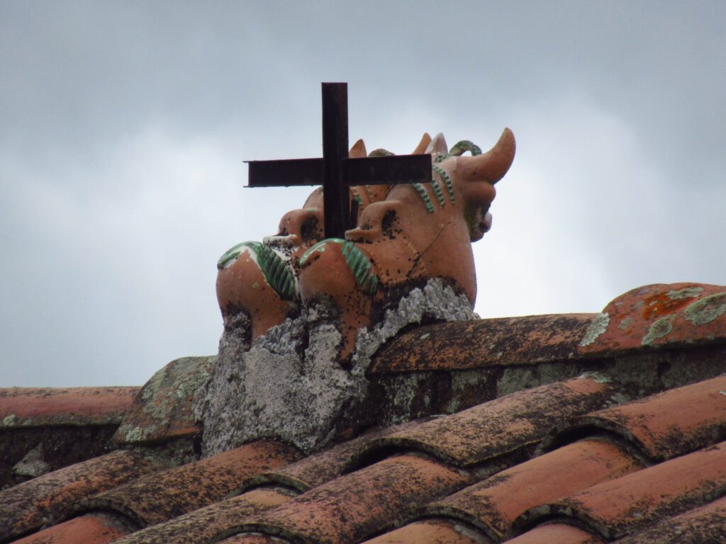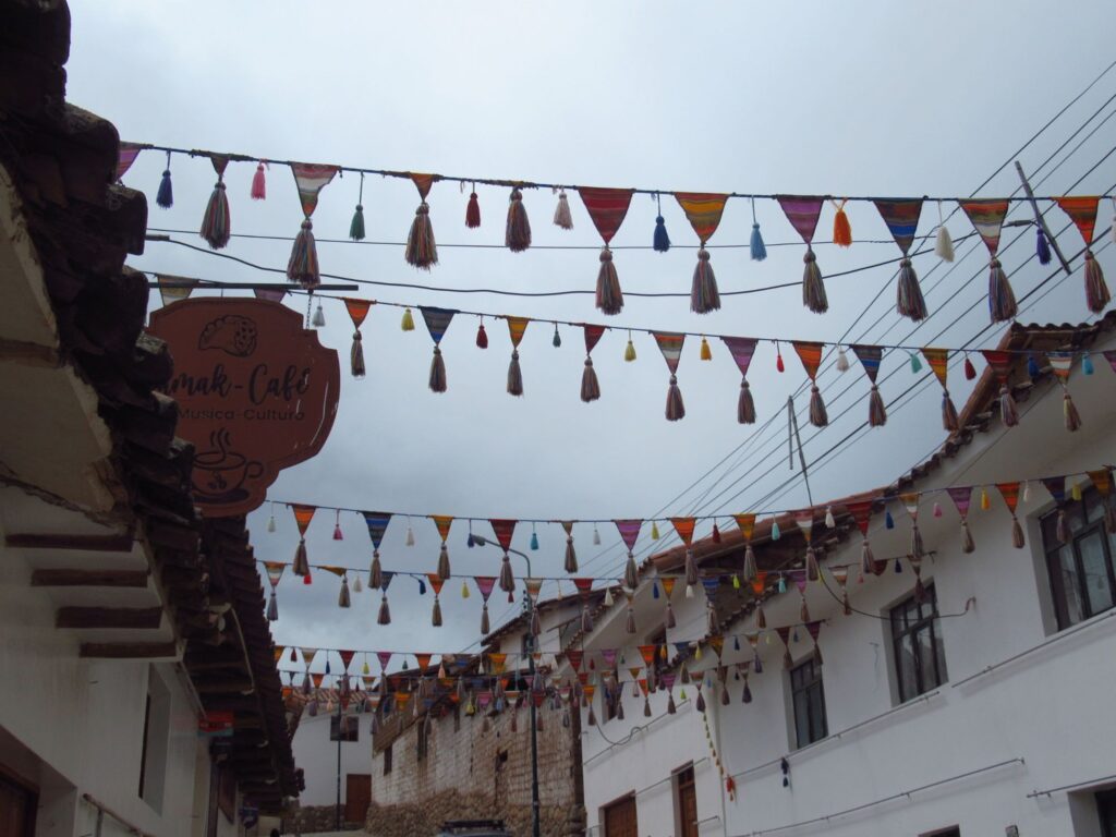 Our next stop was to Chinchero where we were 3700 metres altitude and I could really feel it. Amazing views over the valley. It has a well preserved Inca wall. Most of the roofs in the village have two bulls with a cross, which is to bring good luck.