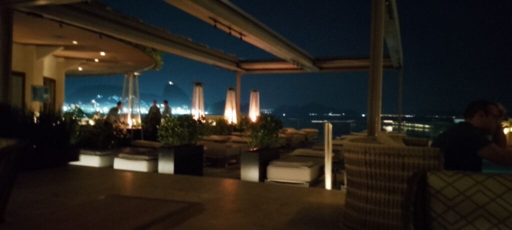 Just having dinner in the bar on the 6th floor of the hotel, overlooking Sugar Loaf Mountain