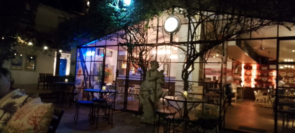 Just having dinner in the courtyard of the hotel, listening to the live saxophonist