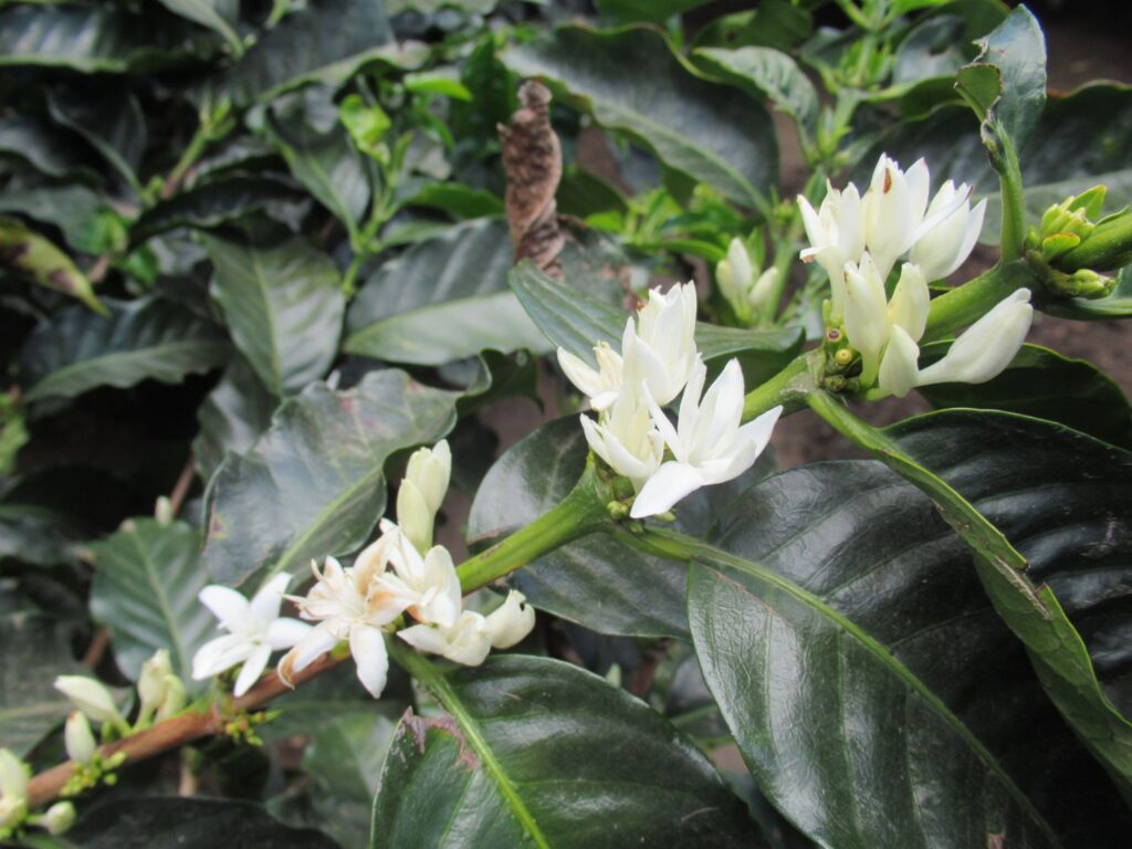 The coffee plants take a year to be big enough to be planted in rows on the estate then another three years before they yield flowers which become beans, when the beans are ripe they turn red/orange and are called cherries.