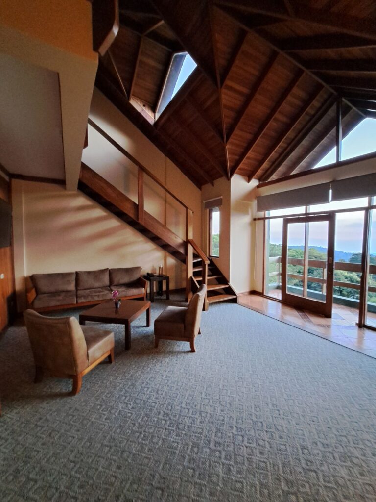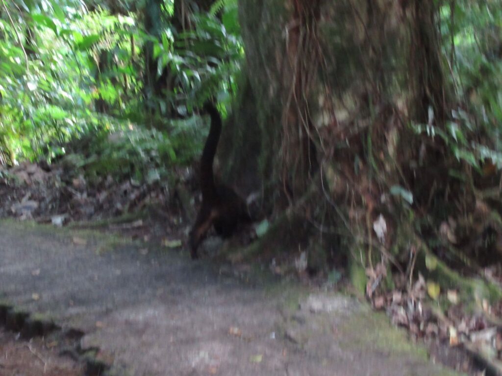 After lunch we walked through the cloud forest traversing eight walkways making up to 2,400 feet in total with heights of up to 240 feet. A fantastic experience and we heard lots of birds, saw a howler monkey and coati. The trees, plants, ferns and flowers were amazing