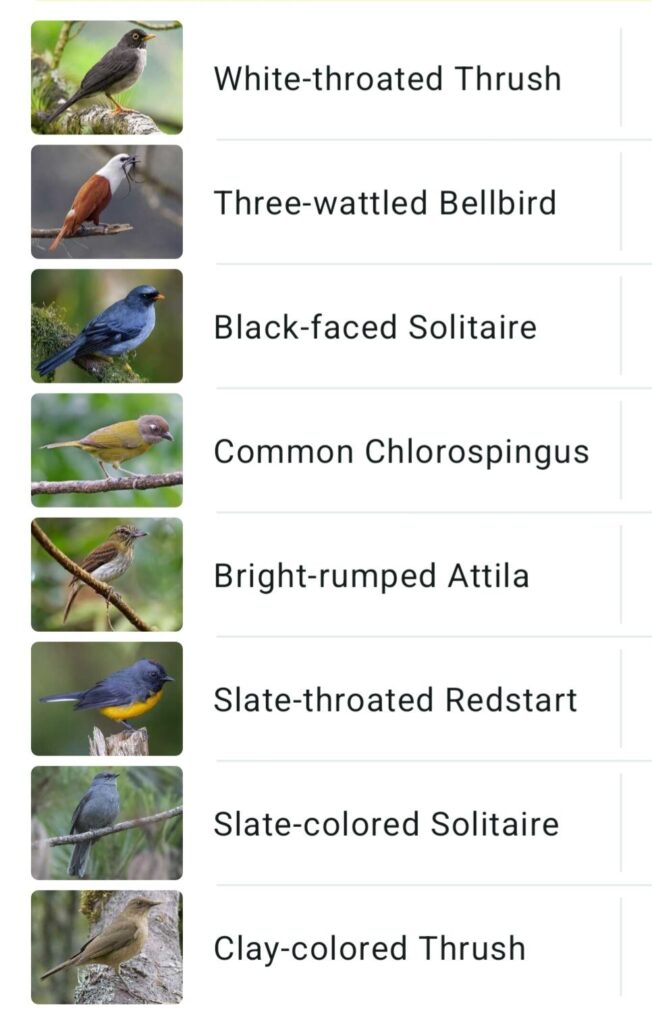 Some of the birds we heard