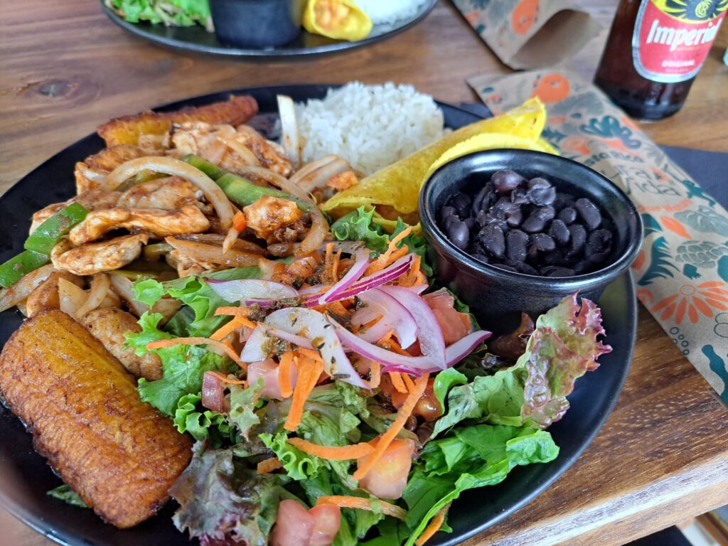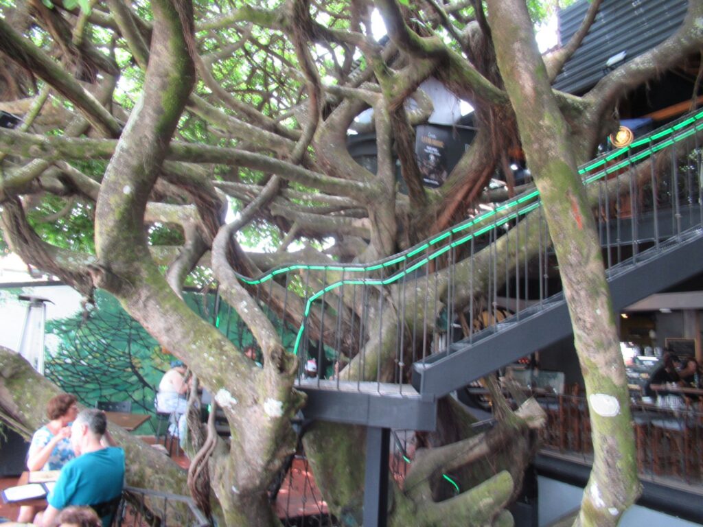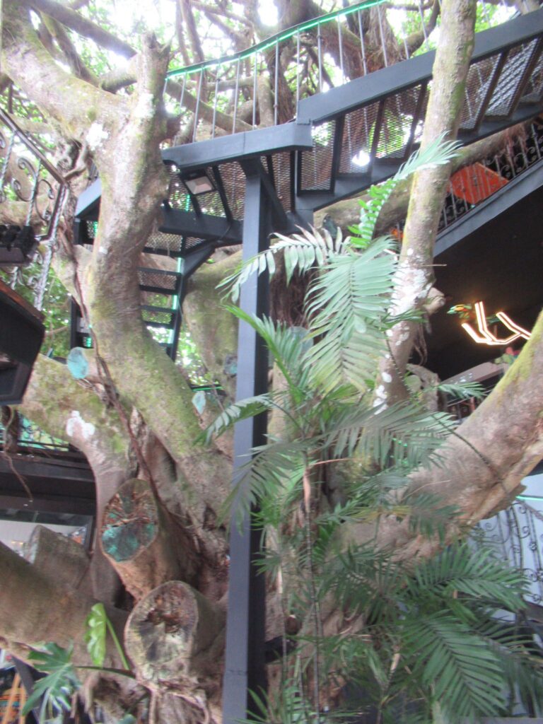 After our walk we went into the small mountain town of Santa Elena and had a typical Costa Rican meal of chicken, rice, black beans, fried plantain and taco. The restaurant was the Tree House which has a tree growing through the centre.