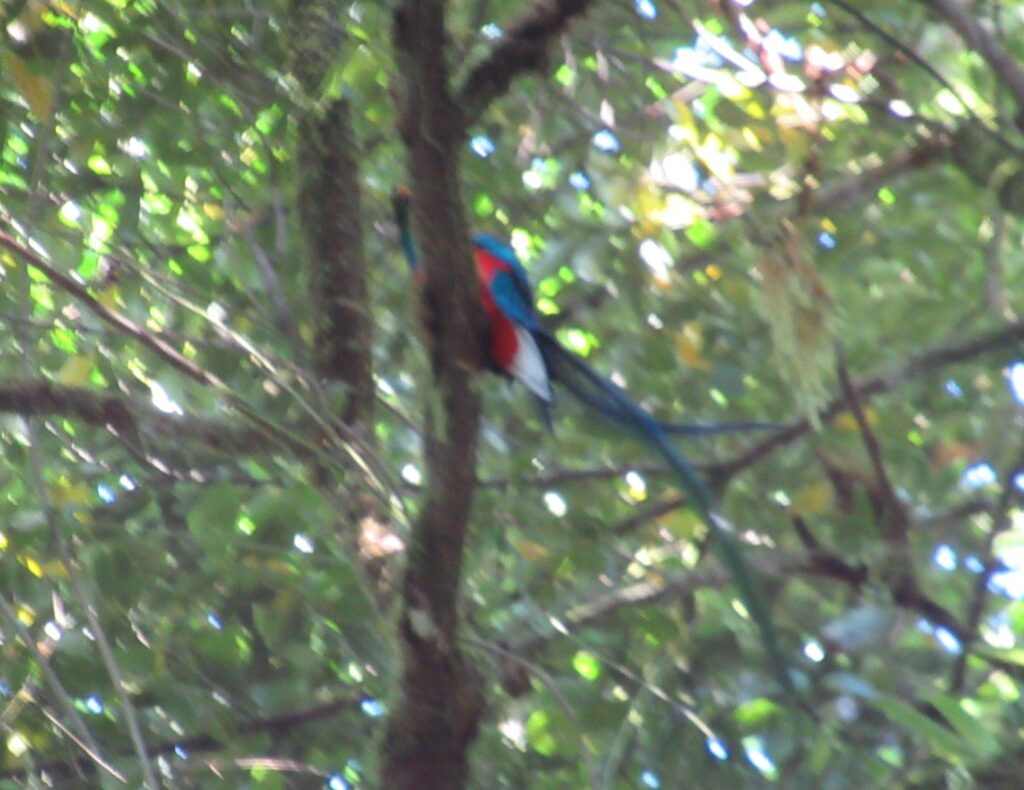 The quetzal is an elusive small, beautifully coloured bird with a long tail. It is highly honoured in Costa Rica and the rest of central America. It is on many bank notes and the Guatamalan currency is the quetzal. Manuel heard the quetzal singing and after a while we spotted it, so everyone was very happy.
