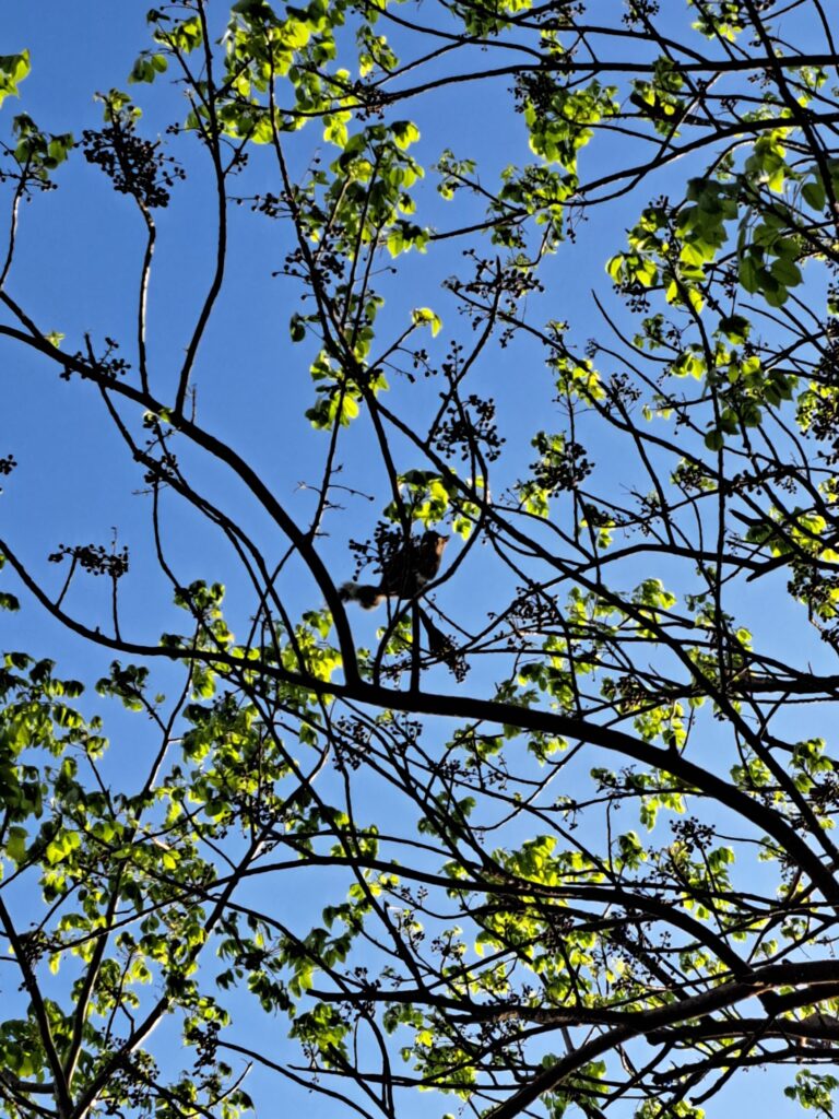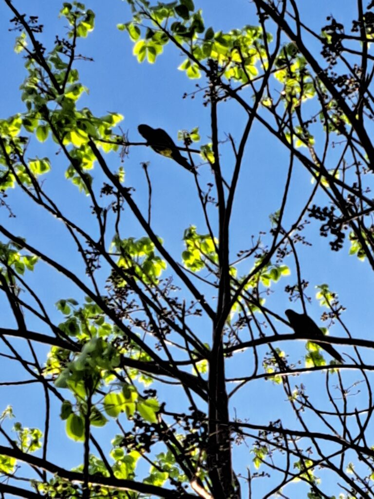 Listening to the parakeets and watching the squirrels in the trees