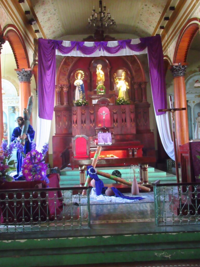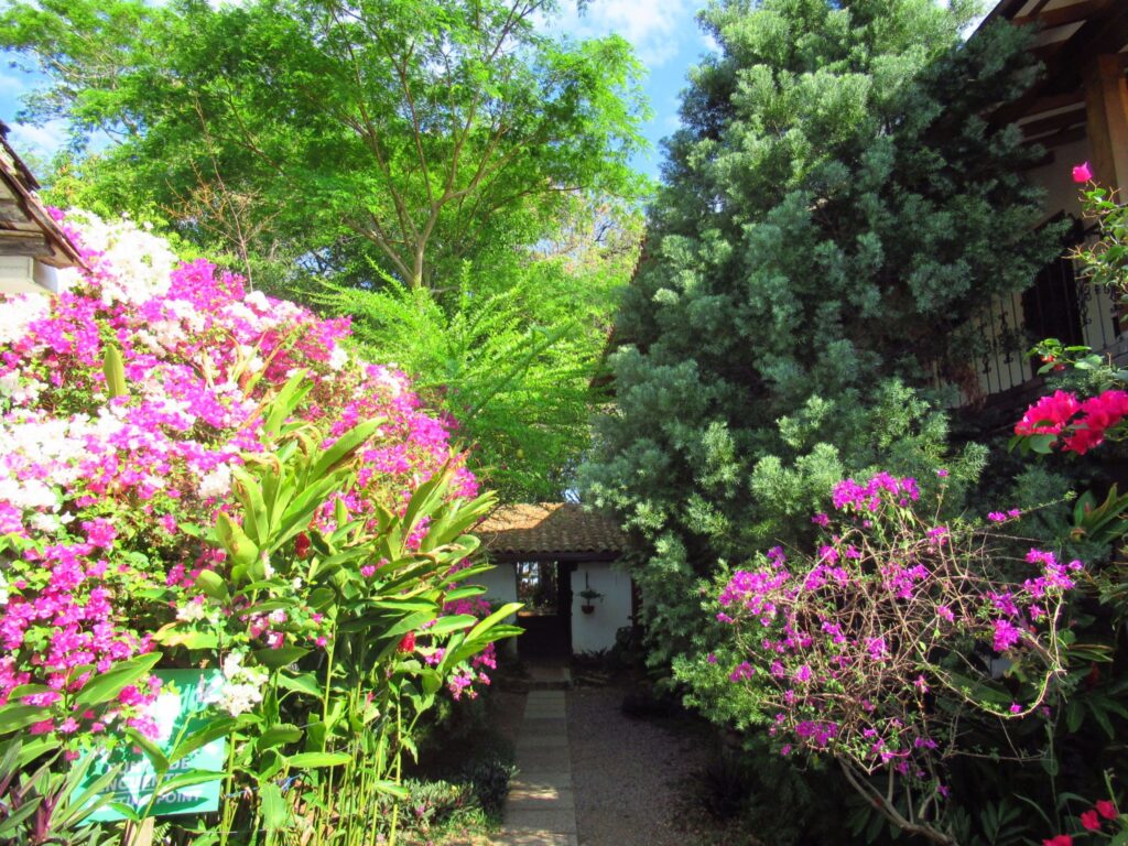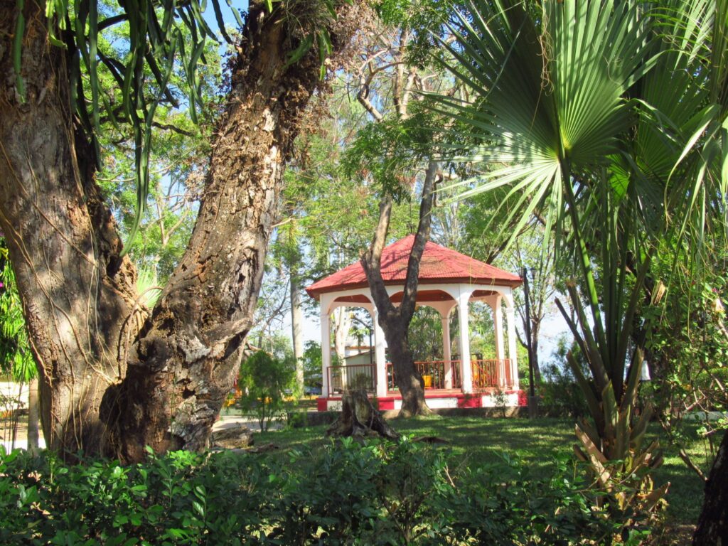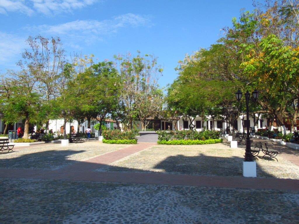 A short guided tour of Suchitoto, walking along the cobbled streets, Santa Lucia church, colourful houses and flowers.