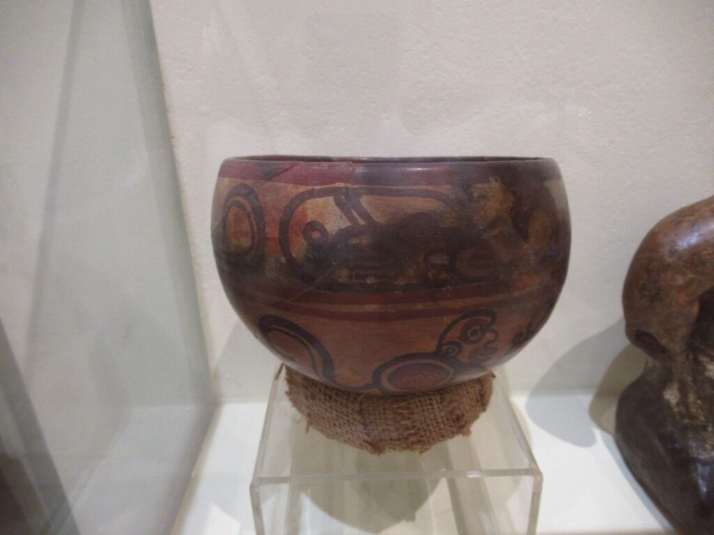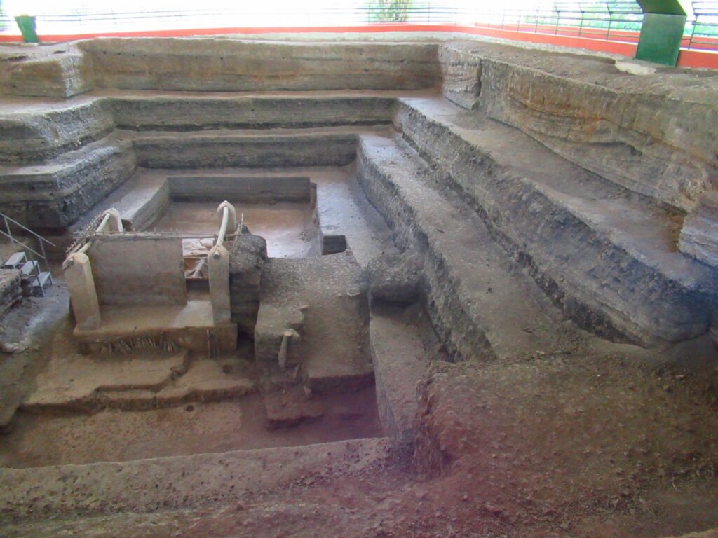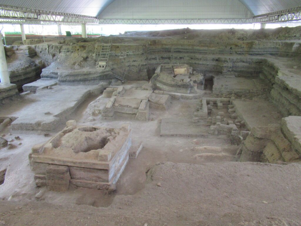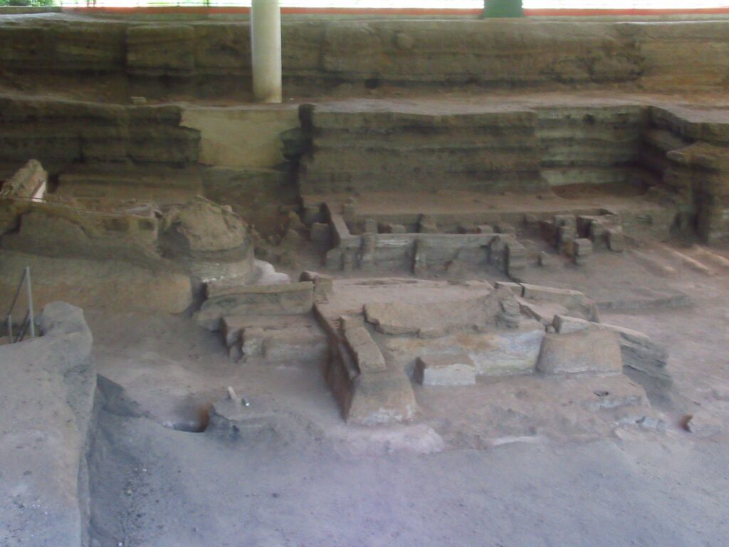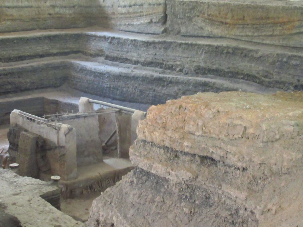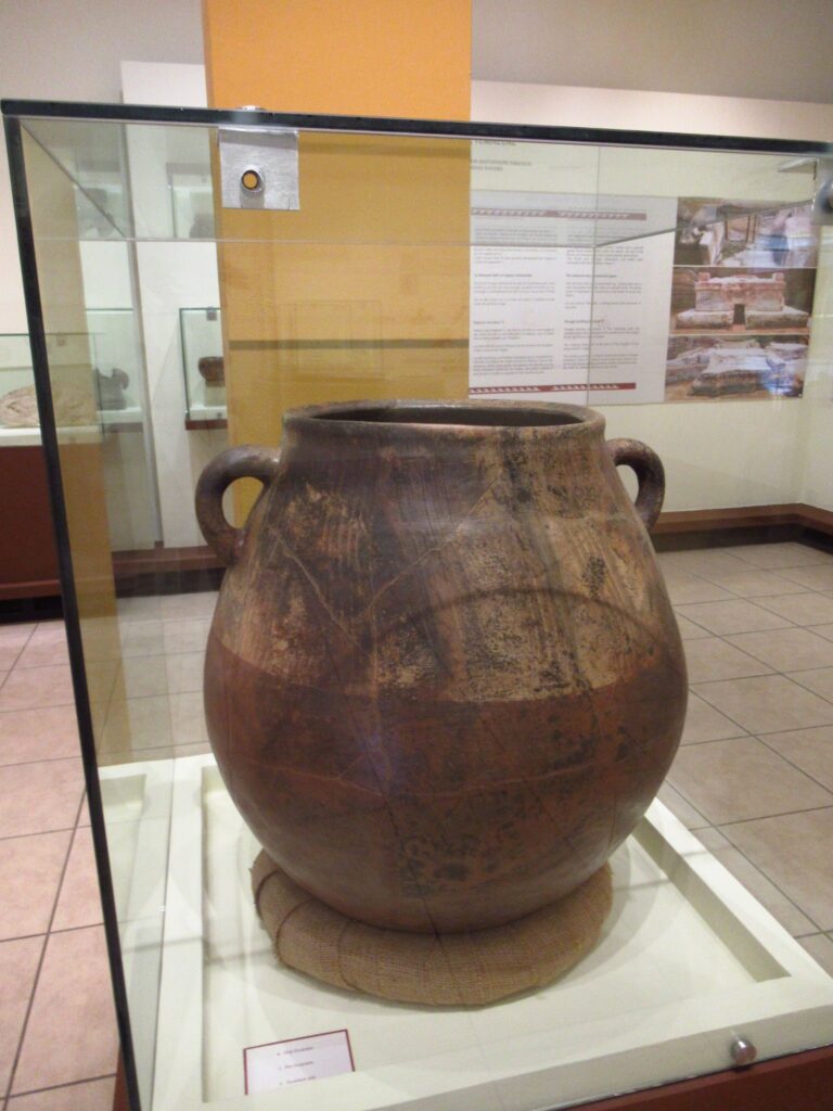 No human skeletons were found only the bones of a duck and a mouse. Not many artefacts were found with the exception of some remarkable pottery