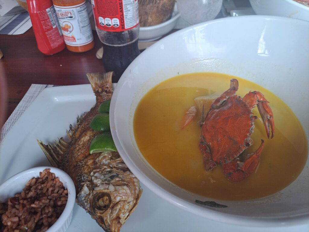 Had lunch in a local restaurant of crab and coconut broth with prawns and a side of red snapper.