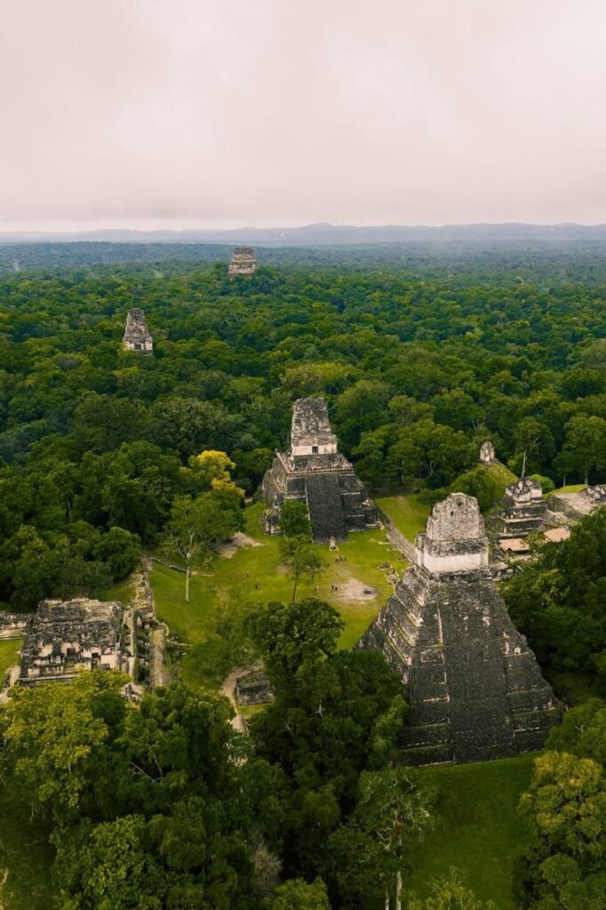 The Great Plaza, framed by Temples 1 and 2 to the east and west, the north Acropolis and the Central Acropolis to the south