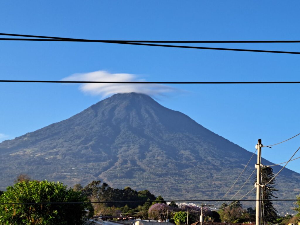 The skies were clear this morning for a shot of the volcanoes.