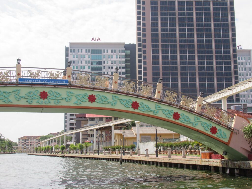 The unique Darul Hana Bridge, is an S shaped pedestrian bridge which twists and turns across the river.