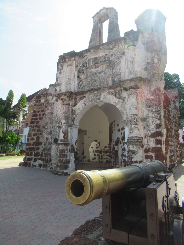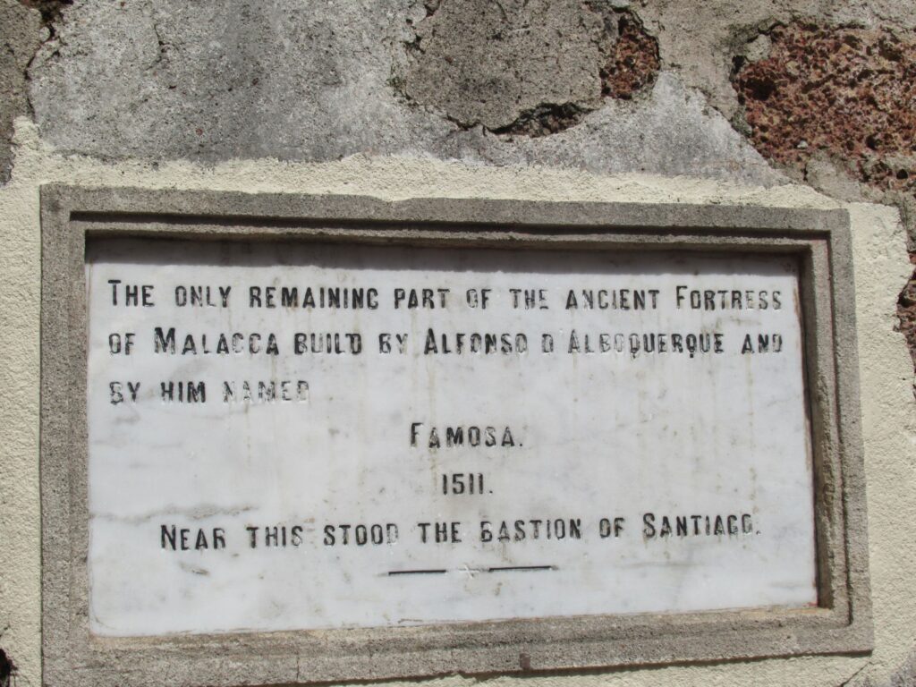 At the bottom of the hill was Porta de Santiago, saved from complete demolition by Sir Stamford Raffles. It was one of the four main gateways into the fortress. Built in 1512 by the Portuguese viceroy.